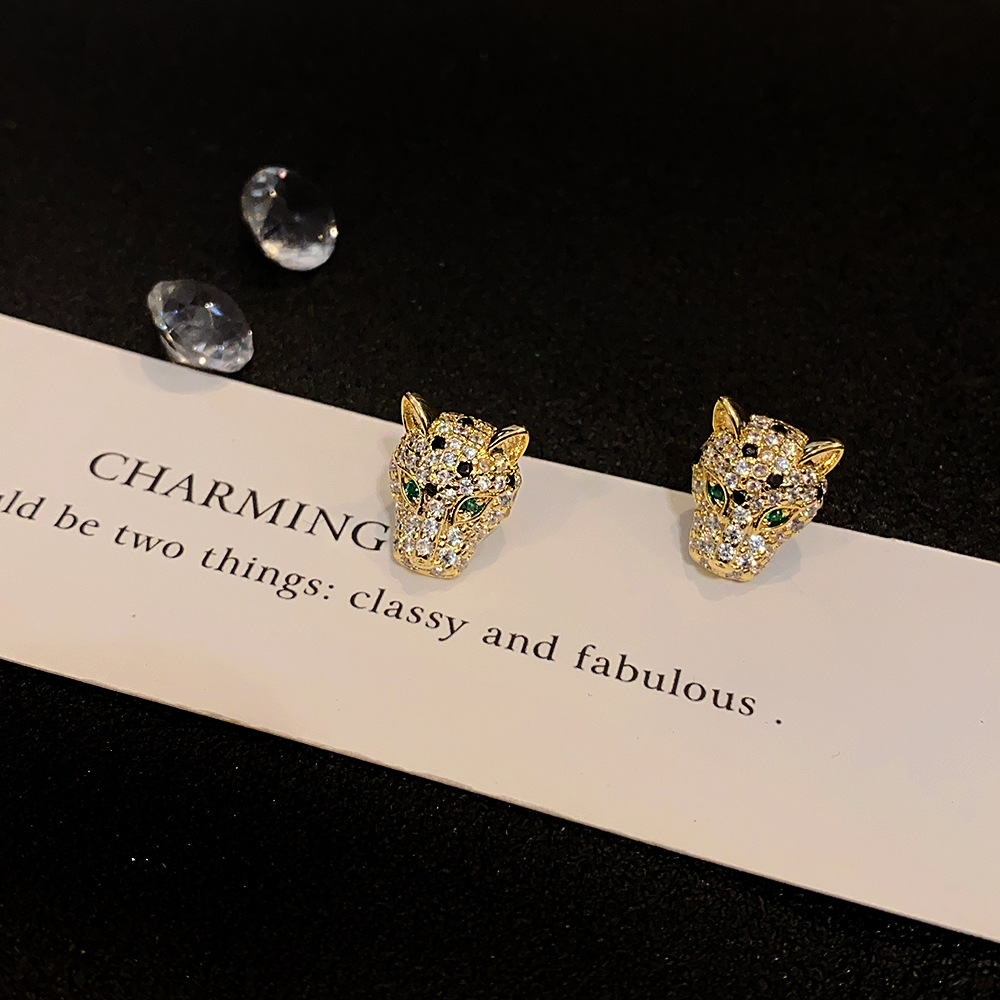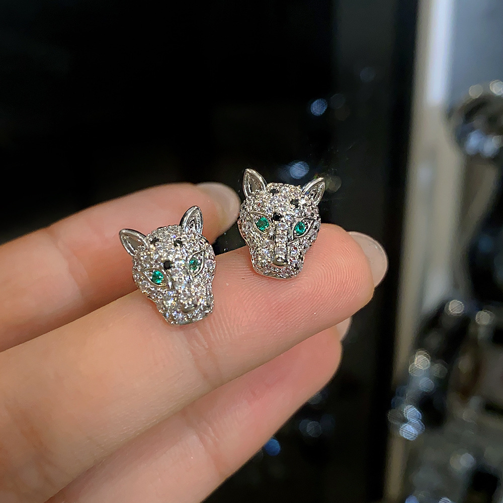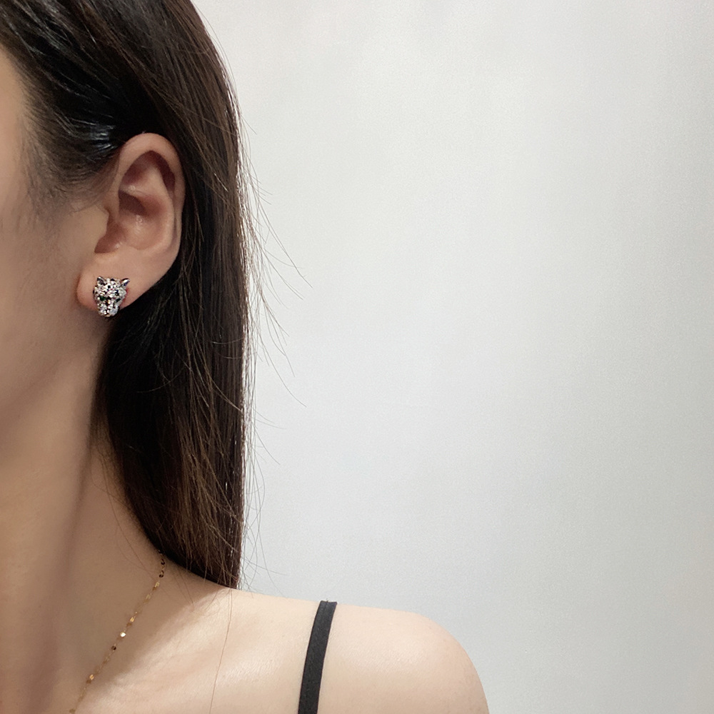 925 Silver Needle Personality Leopard Head Zircon Earrings