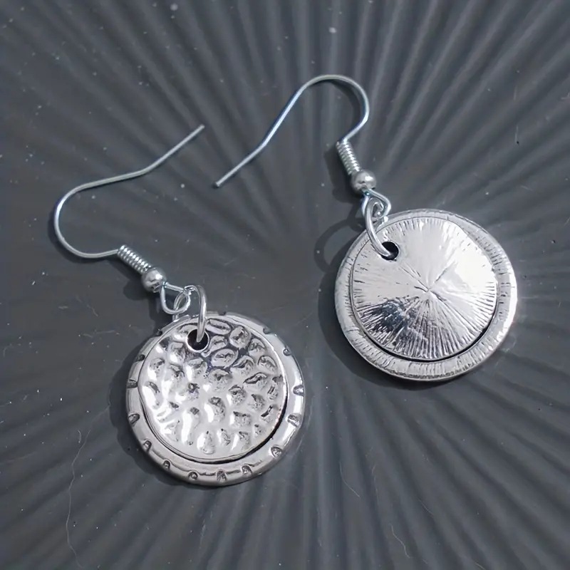 Vintage Bohemian Style Silver Disc Design Pendant Earrings